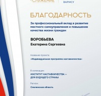 Благодарность Воробьевой Е.С. за профессиональный вклад в развитие местного самоуправления и повышения качества жизни граждан